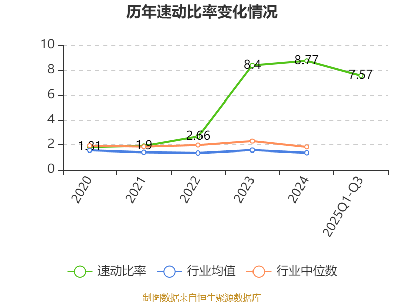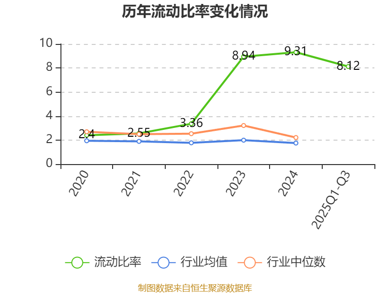 2025年前三季度,公司流动比率为8.12,速动比率为7.57。