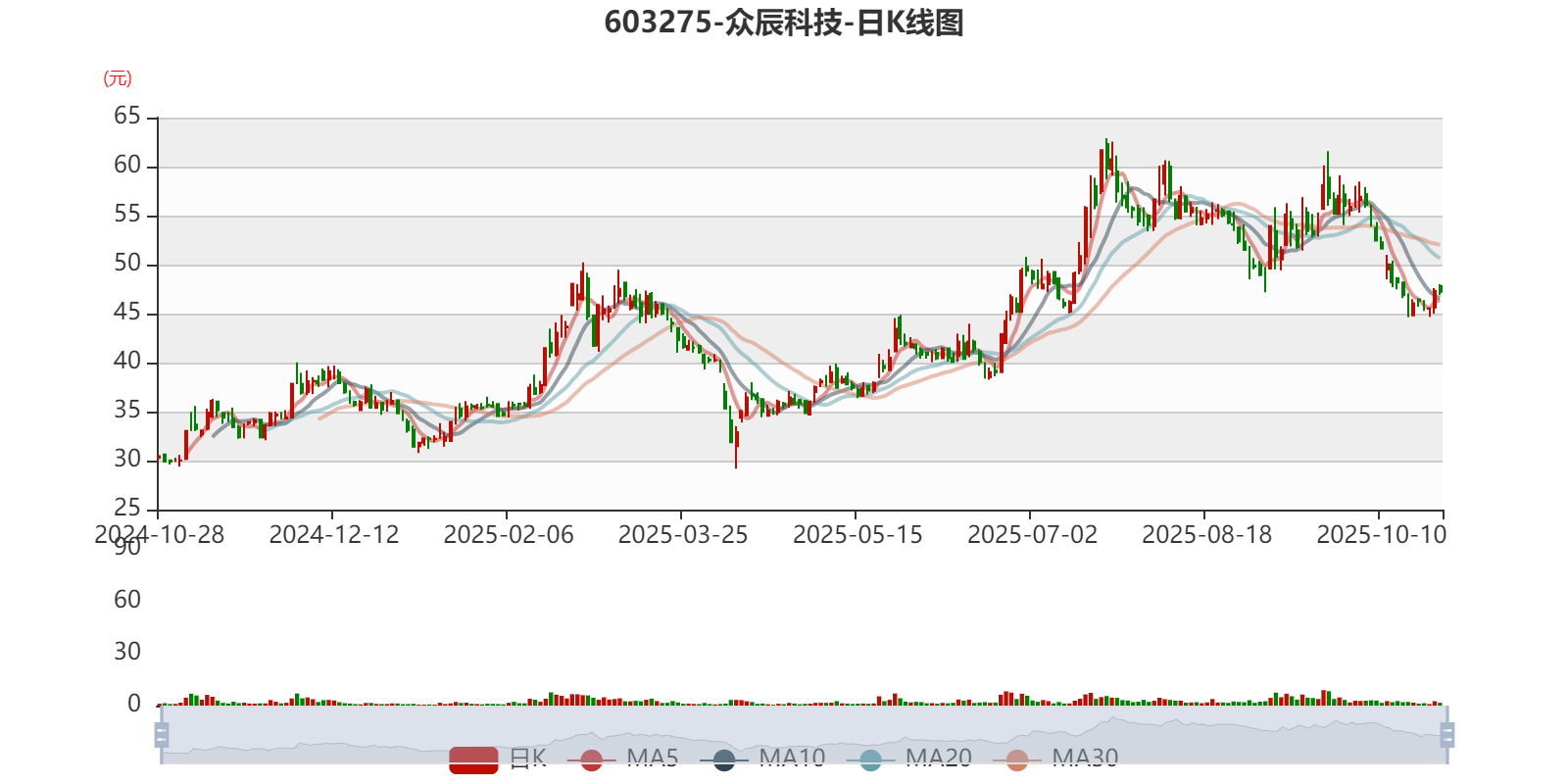 以10月27日收盘价计算,众辰科技目前市盈率(TTM)约为36.24倍,市净率(LF)约2.4倍,市销率(TTM)约9.87倍。