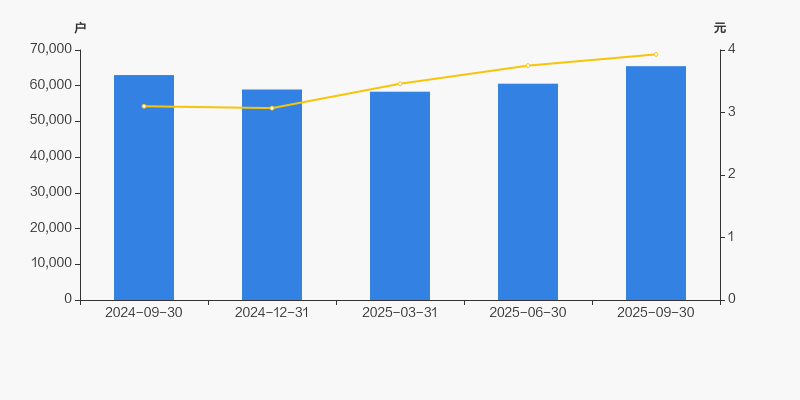 截至2025年9月30日,公司最新总股本为8.45亿股,其中流通股本为6.11亿股。户均持有流通股数量由上期的1.01万股下降至9335股,户均流通市值3.67万元。
