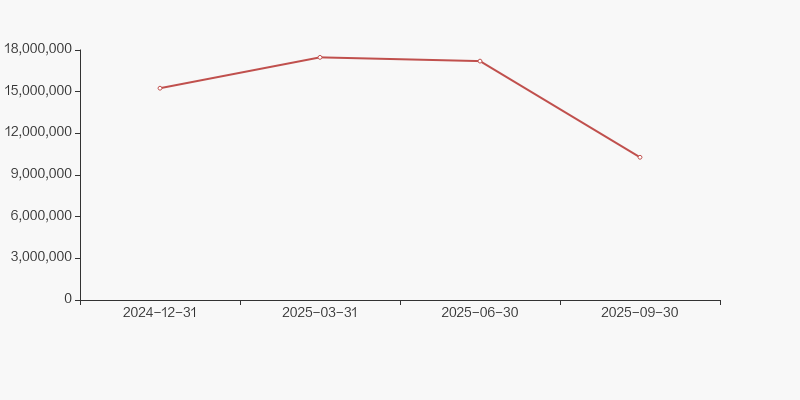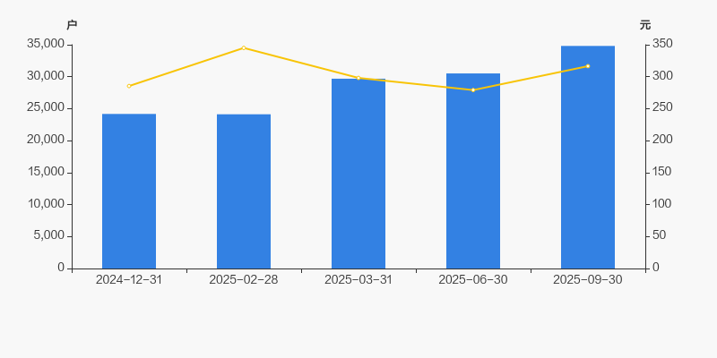自2025年2月28日以来,公司股东户数连续3期上涨,截至目前增幅为44.31%。2025年2月28日至2025年9月30日区间股价下降8.27%。