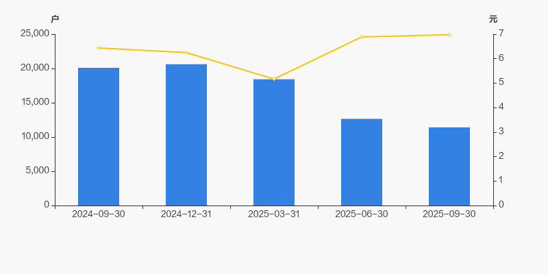 自2024年12月31日以来,公司股东户数连续3期下降,截至目前减幅为44.69%。2024年12月31日至2025年9月30日区间股价上涨11.68%。