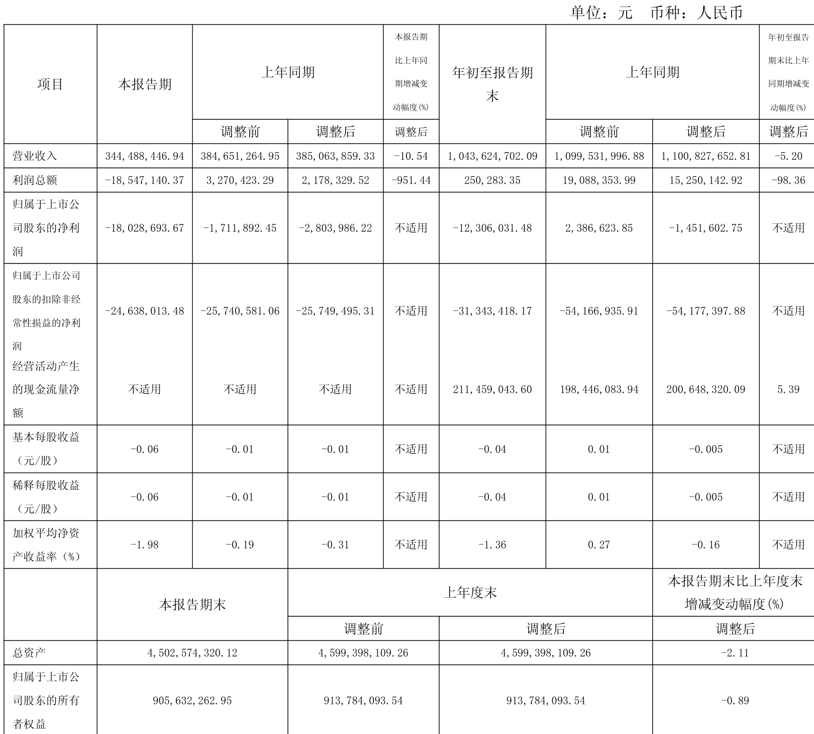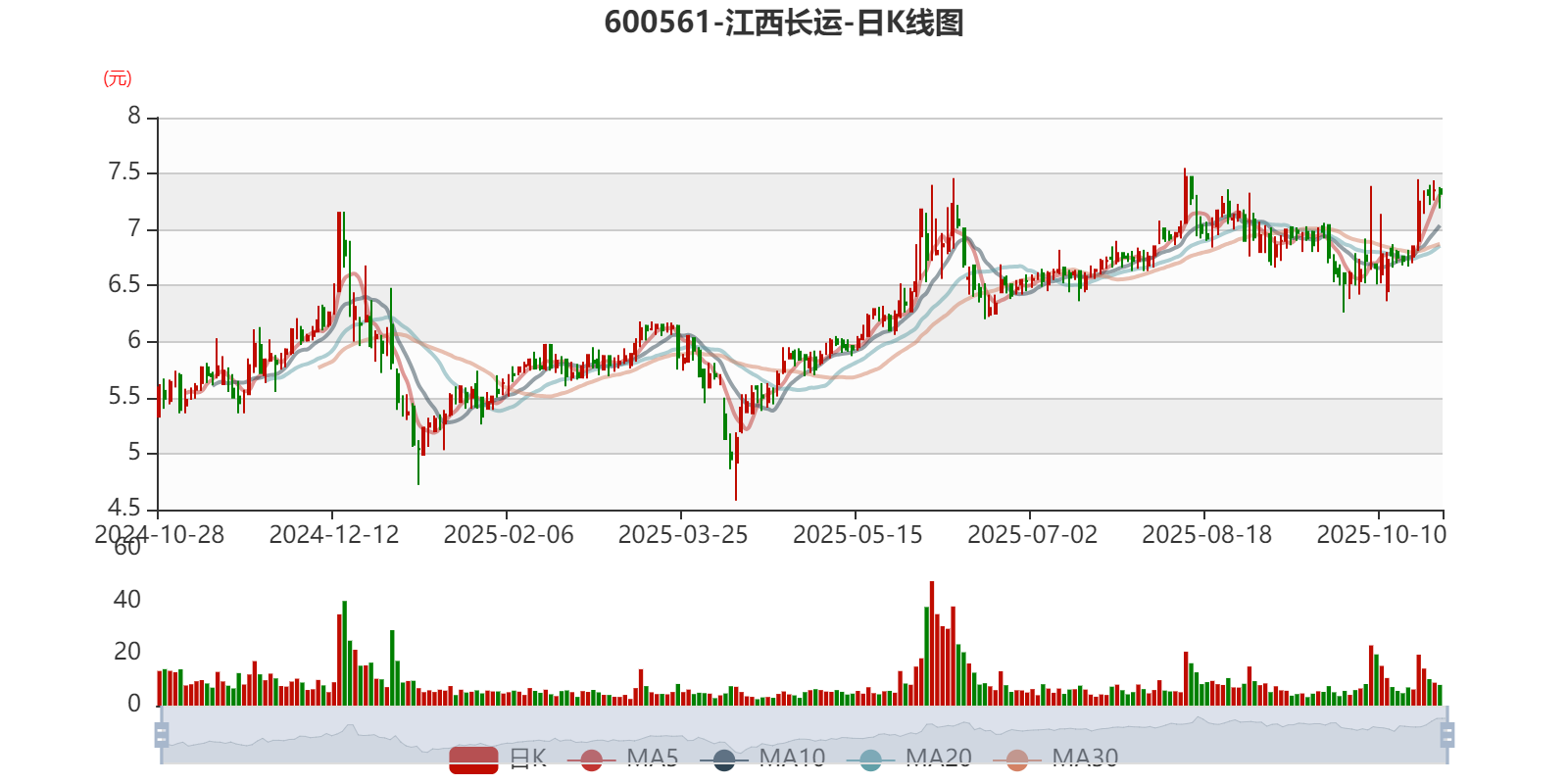 中证智能财讯江西长运(600561)10月28日披露2025年第三季度报告。前三季度公司实现营业总收入10.44亿元,同比下降5.20%;归母净利润亏损1230.6万元,上年同期亏损145.16万元;扣非净利润亏损3134.34万元,上年同期亏损5417.74万元;经营活动产生的现金流量净额为2.11亿元,同比增长5.39%;报告期内,江西长运基本每股收益为-0.04元,加权平均净资产收益率为-1.36%。