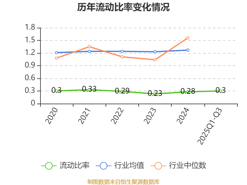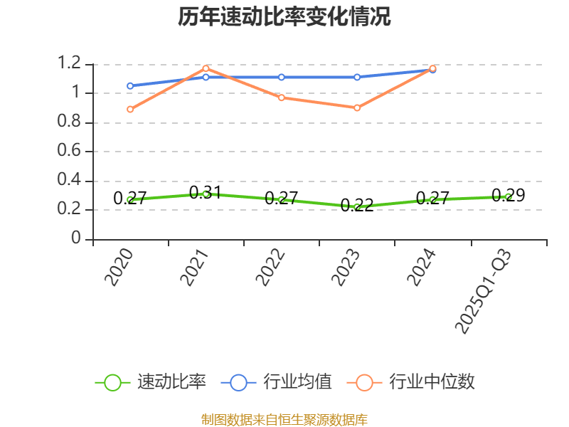 2025年前三季度,公司流动比率为0.3,速动比率为0.29。