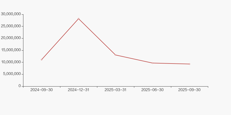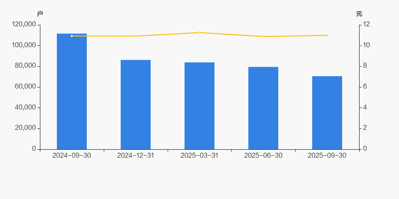 自2024年9月30日以来,公司股东户数连续4期下降,截至目前减幅为36.82%。2024年9月30日至2025年9月30日区间股价上涨0.51%。