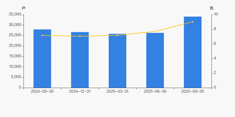 2024年9月30日至今,公司股东户数显著增长,区间涨幅为21.93%。2024年9月30日至2025年9月30日区间股价上涨25.73%。
