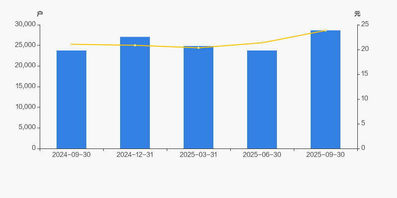 2024年9月30日至今,公司股东户数显著增长,区间涨幅为20.53%。2024年9月30日至2025年9月30日区间股价上涨13.25%。