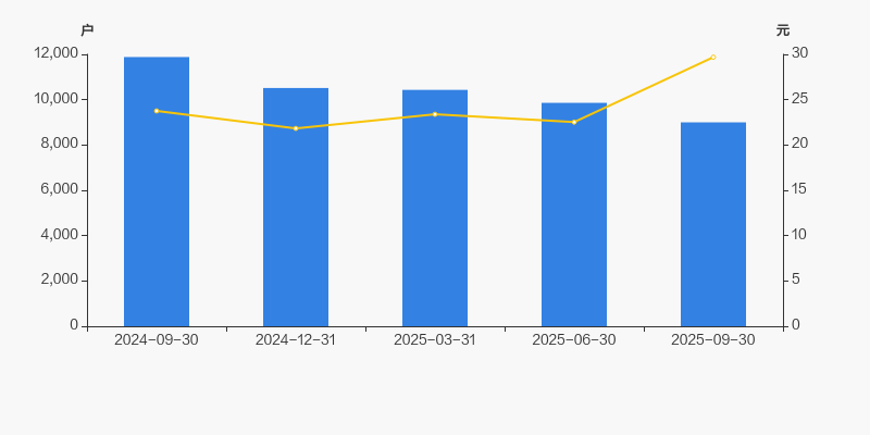 2024年9月30日至今,公司股东户数显著下降,区间跌幅为24.26%。2024年9月30日至2025年9月30日区间股价上涨24.96%。