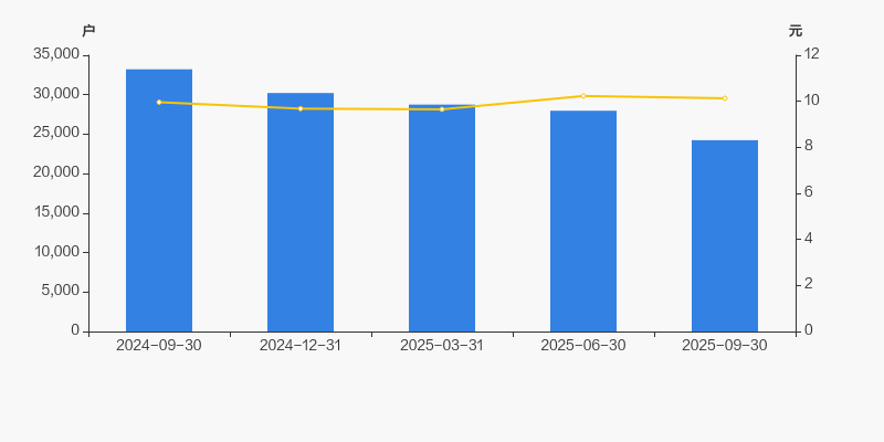 自2024年9月30日以来,公司股东户数连续4期下降,截至目前减幅为27.04%。2024年9月30日至2025年9月30日区间股价上涨1.66%。