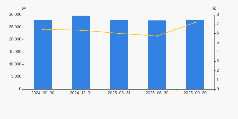 2024年9月30日至今,公司股东户数有所下降,区间跌幅为0.45%。2024年9月30日至2025年9月30日区间股价上涨11.30%。