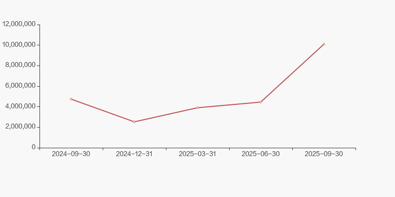 截至2025年9月30日,公司最新总股本为9.35亿股,其中流通股本为6.46亿股。户均持有流通股数量由上期的1.27万股上升至1.44万股,户均流通市值11.66万元。