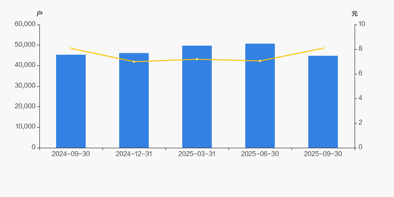2024年9月30日至今,公司股东户数有所下降,区间跌幅为1.17%。2024年9月30日至2025年9月30日区间股价上涨0.17%。