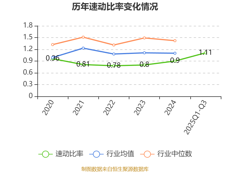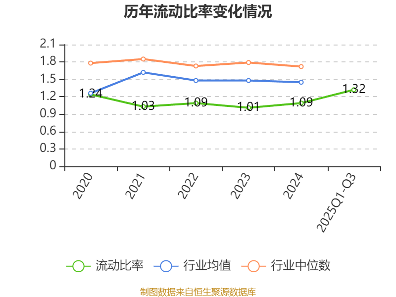 2025年前三季度,公司流动比率为1.32,速动比率为1.11。