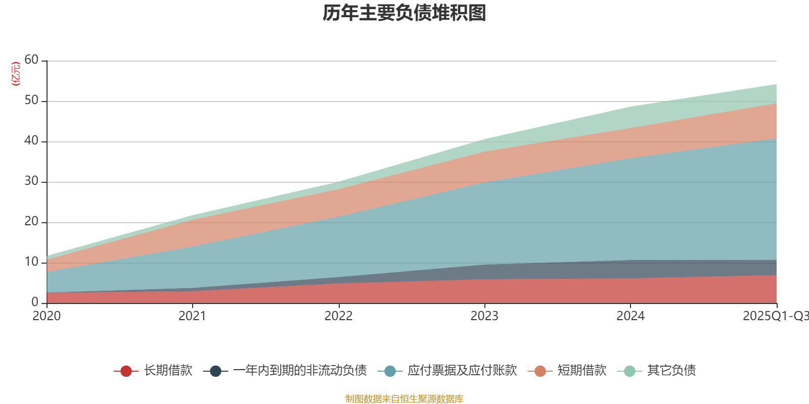 负债重大变化方面,截至2025年三季度末,公司一年内到期的非流动负债较上年末减少16.97%,占公司总资产比重下降2.14个百分点;其他流动负债较上年末减少70.12%,占公司总资产比重下降1.84个百分点;应付票据及应付账款较上年末增加19.22%,占公司总资产比重下降1.55个百分点;长期借款较上年末增加13.57%,占公司总资产比重下降0.76个百分点。