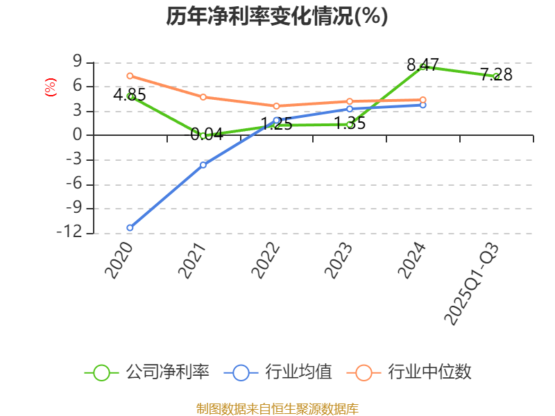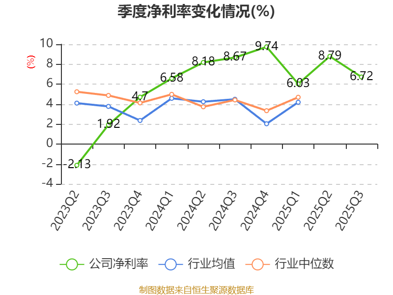 盈利能力方面, 2025年前三季度公司加权平均净资产收益率为17.66%,同比下降7.21个百分点。公司2025年前三季度投入资本回报率为9.59%,较上年同期下降3.45个百分点。