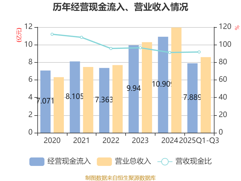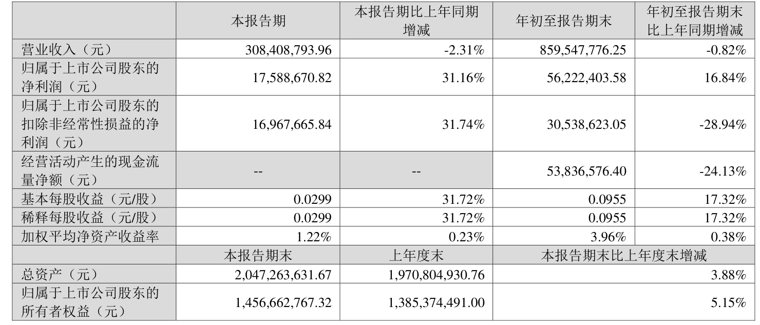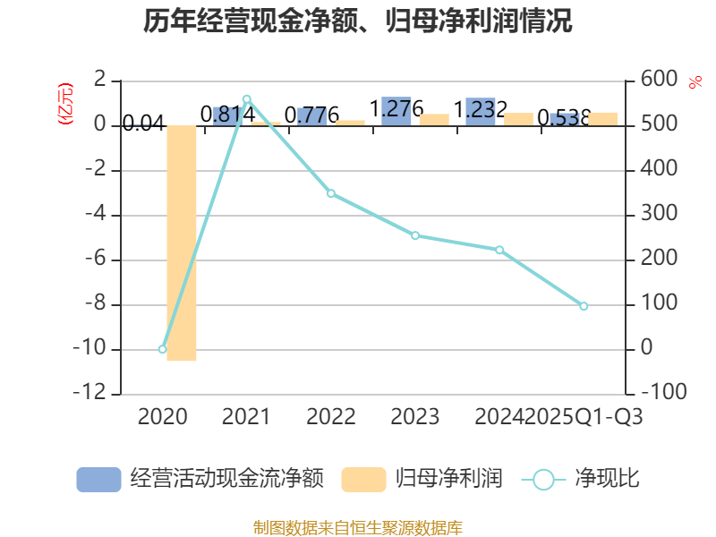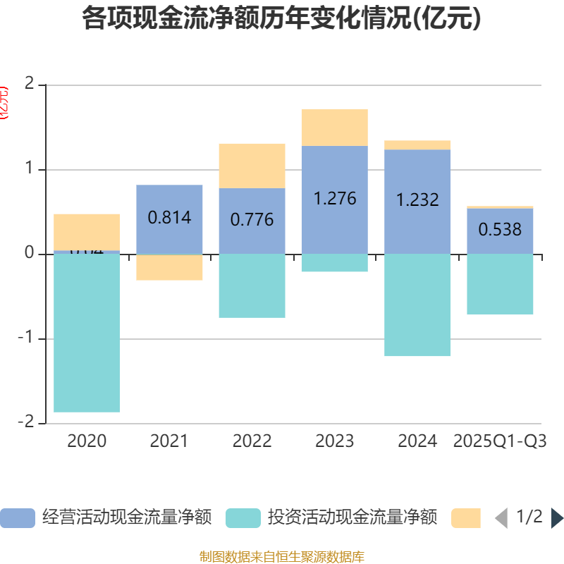 2025年前三季度,公司经营活动现金流净额为5383.66万元,同比下降24.13%;筹资活动现金流净额260.32万元,同比减少2260.68万元;投资活动现金流净额-7169.72万元,上年同期为-8562.18万元。