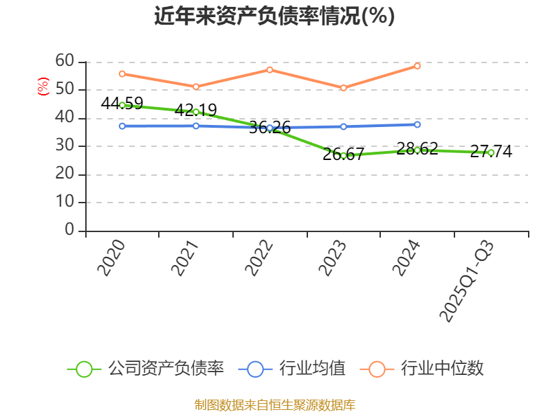 资产重大变化方面,截至2025年三季度末,公司长期股权投资较上年末增加51.61%,占公司总资产比重上升4.68个百分点;存货较上年末减少29.5%,占公司总资产比重下降1.95个百分点;货币资金较上年末减少5.54%,占公司总资产比重下降1.5个百分点;其他非流动资产较上年末减少79.04%,占公司总资产比重下降1.21个百分点。