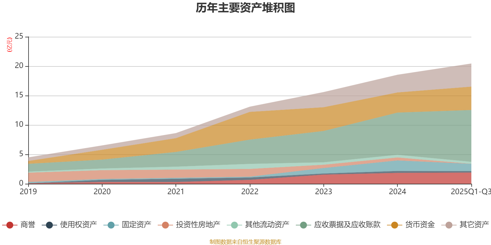 资产重大变化方面,截至2025年三季度末,公司应收票据及应收账款较上年末增加22.92%,占公司总资产比重上升4.44个百分点;固定资产较上年末减少30.97%,占公司总资产比重下降3.64个百分点;投资性房地产较上年末减少100%,占公司总资产比重下降2.73个百分点;应收款项融资较上年末增加434.31%,占公司总资产比重上升2.37个百分点。