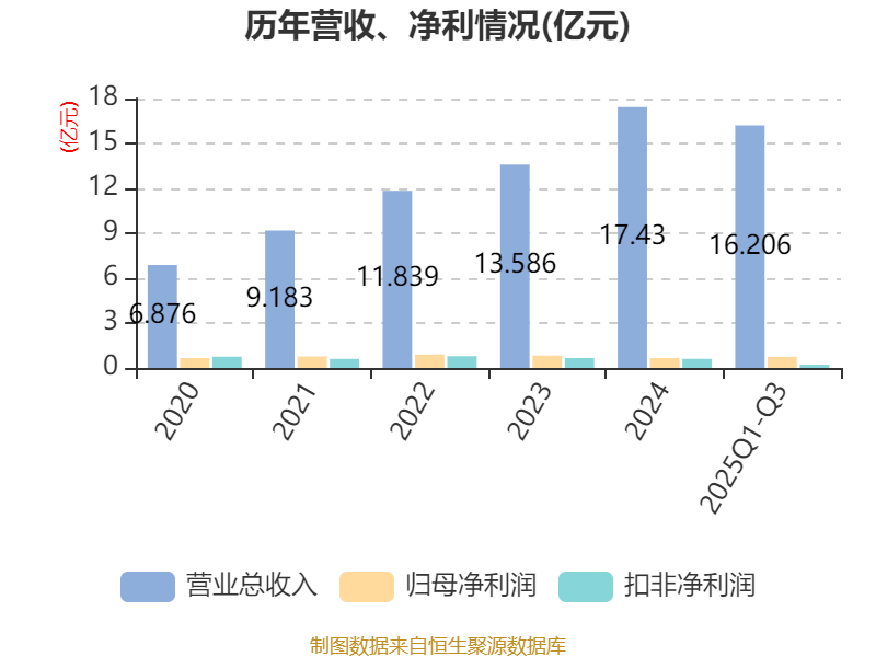中证智能财讯慧博云通(301316)10月28日披露2025年第三季度报告。前三季度公司实现营业总收入16.21亿元,同比增长34.31%;归母净利润7408.97万元,同比增长94.05%;扣非净利润2142.23万元,同比下降36.23%;经营活动产生的现金流量净额为-1.26亿元,上年同期为-3160.16万元;报告期内,慧博云通基本每股收益为0.184元,加权平均净资产收益率为7.03%。