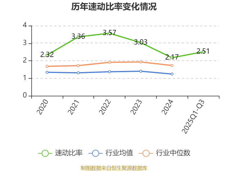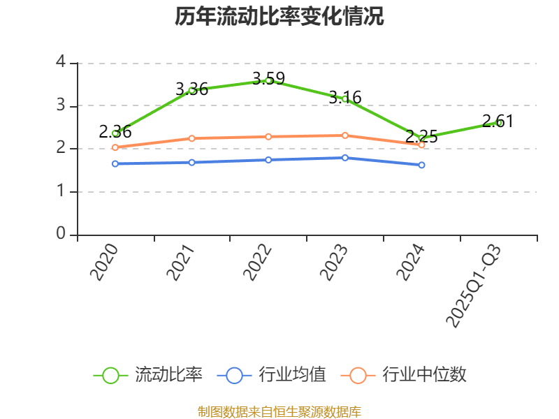 2025年前三季度,公司流动比率为2.61,速动比率为2.51。