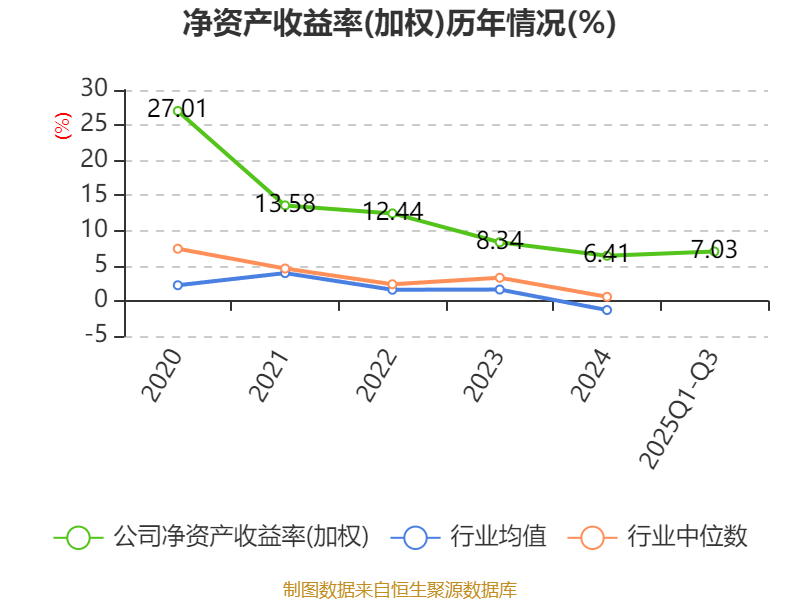 盈利能力方面, 2025年前三季度公司加权平均净资产收益率为7.03%,同比上升3.33个百分点。公司2025年前三季度投入资本回报率为4.7%,较上年同期上升1.41个百分点。