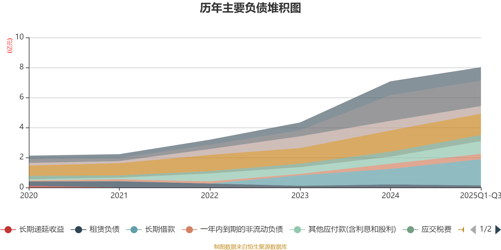 负债重大变化方面,截至2025年三季度末,公司长期借款较上年末增加67.67%,占公司总资产比重上升2.93个百分点;其他应付款(含利息和股利)较上年末增加82.46%,占公司总资产比重上升1.66个百分点;应付票据及应付账款较上年末减少20.41%,占公司总资产比重下降0.96个百分点;短期借款较上年末减少0.41%,占公司总资产比重下降0.89个百分点。