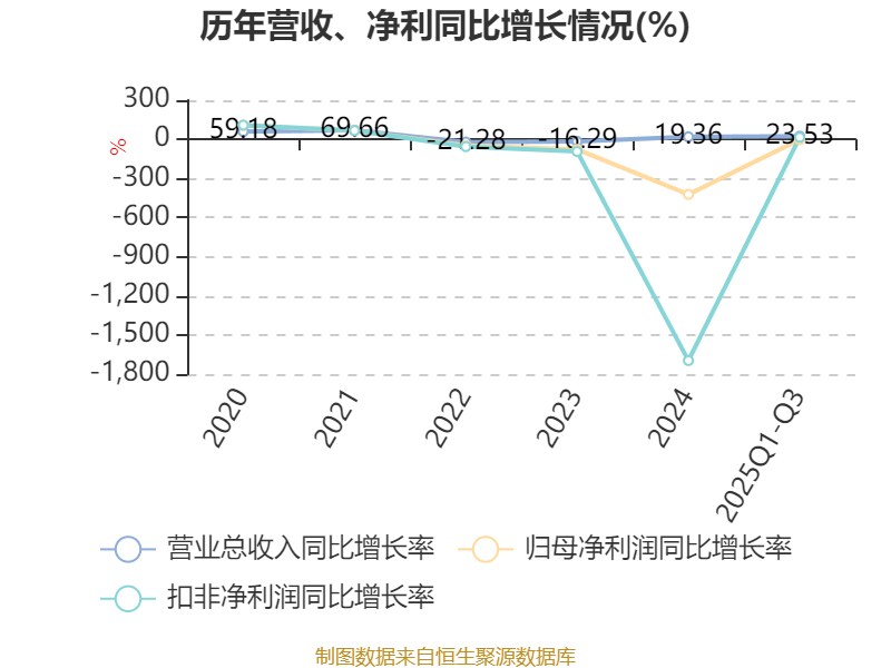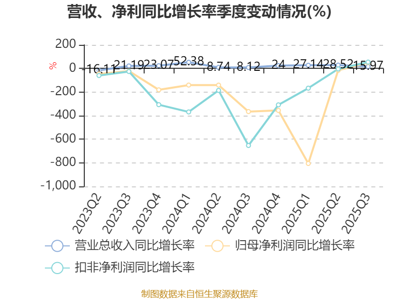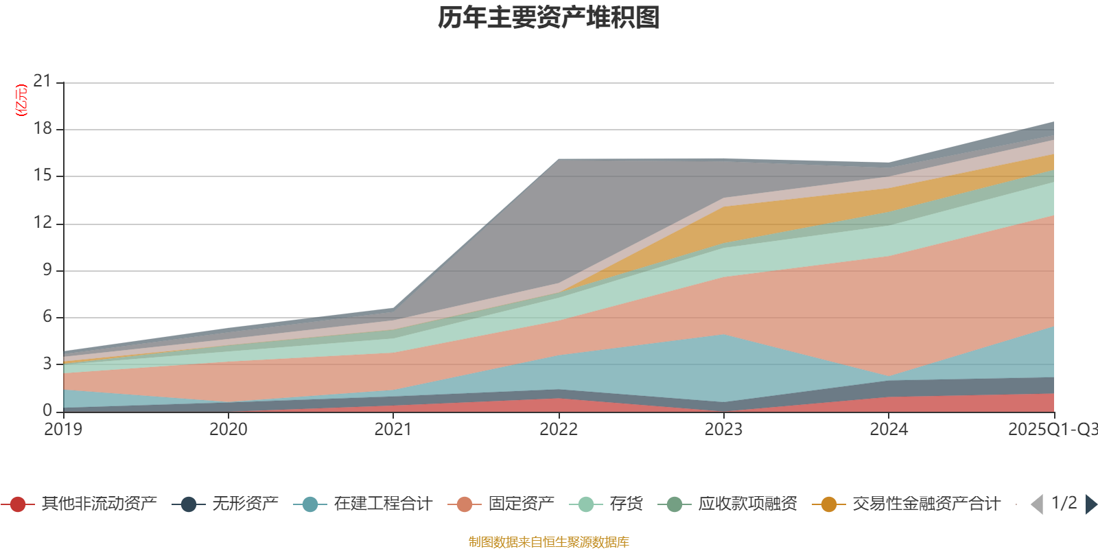 资产重大变化方面,截至2025年三季度末,公司在建工程合计较上年末增加1091.43%,占公司总资产比重上升15.81个百分点;固定资产较上年末减少7.56%,占公司总资产比重下降9.95个百分点;交易性金融资产合计较上年末减少33.32%,占公司总资产比重下降4.08个百分点;货币资金较上年末减少47.69%,占公司总资产比重下降1.95个百分点。