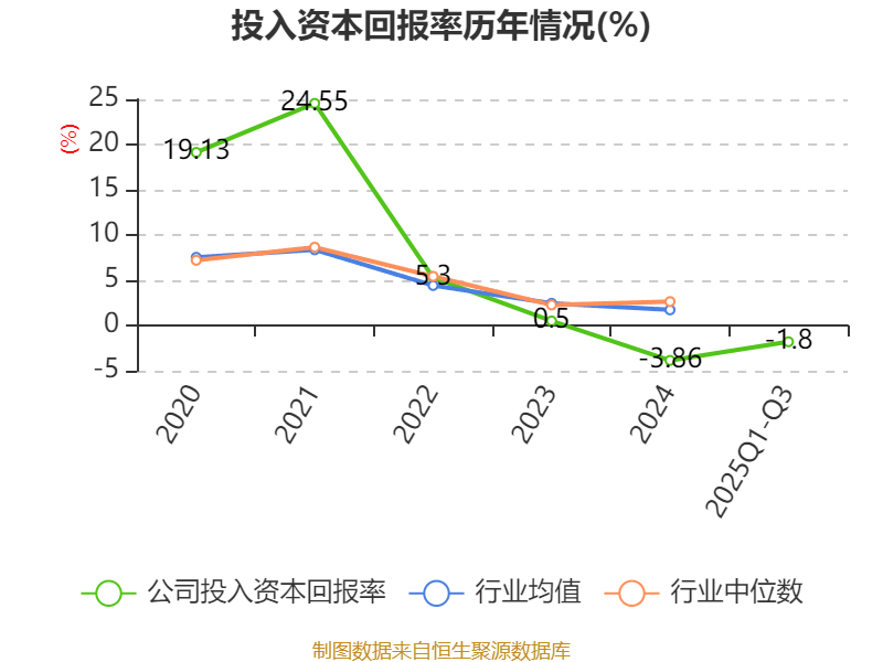 盈利能力方面, 2025年前三季度公司加权平均净资产收益率为-1.73%,同比下降0.15个百分点。公司2025年前三季度投入资本回报率为-1.8%,较上年同期上升0.15个百分点。