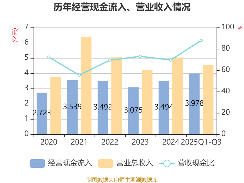 2025年前三季度,公司流动比率为4.22,速动比率为2.65。