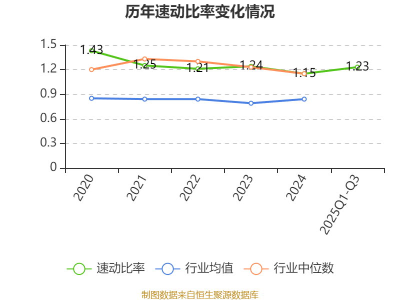2025年前三季度,公司流动比率为1.27,速动比率为1.23。