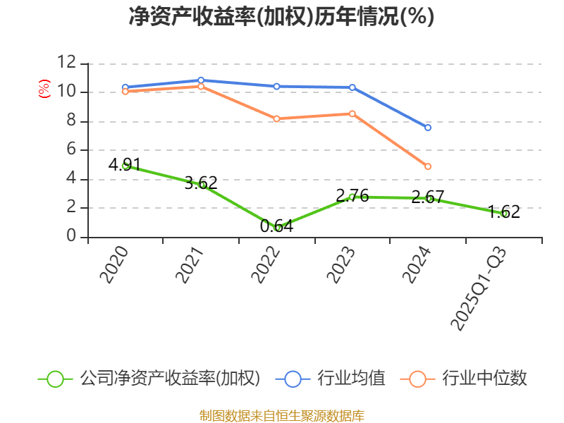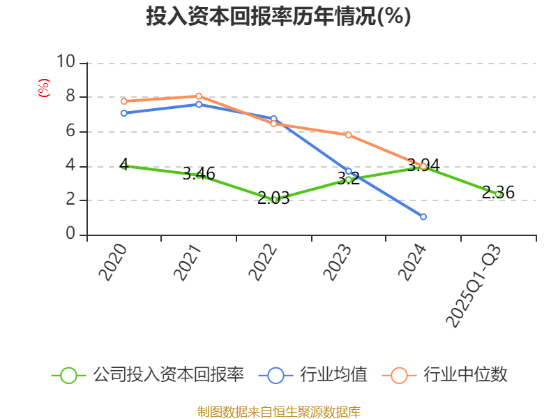 盈利能力方面, 2025年前三季度公司加权平均净资产收益率为1.62%,同比下降0.45个百分点。公司2025年前三季度投入资本回报率为2.36%,较上年同期下降0.26个百分点。