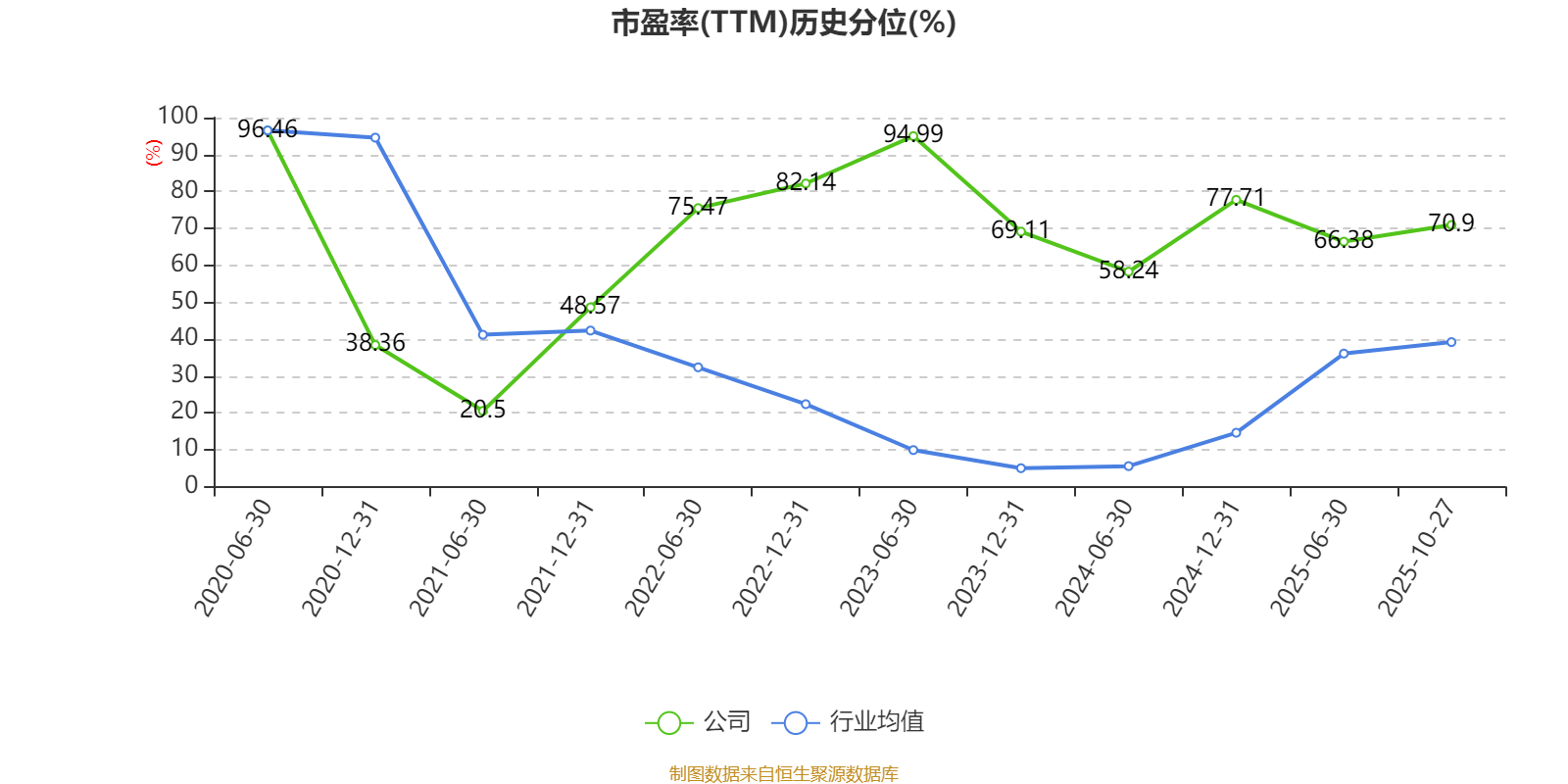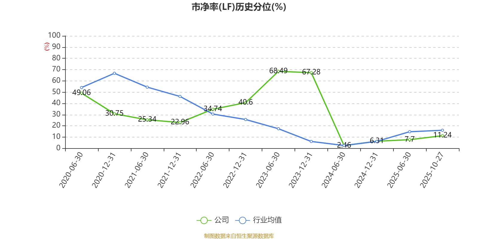 市盈率、市净率为负时,不显示当期分位数,会导致折线图中断。