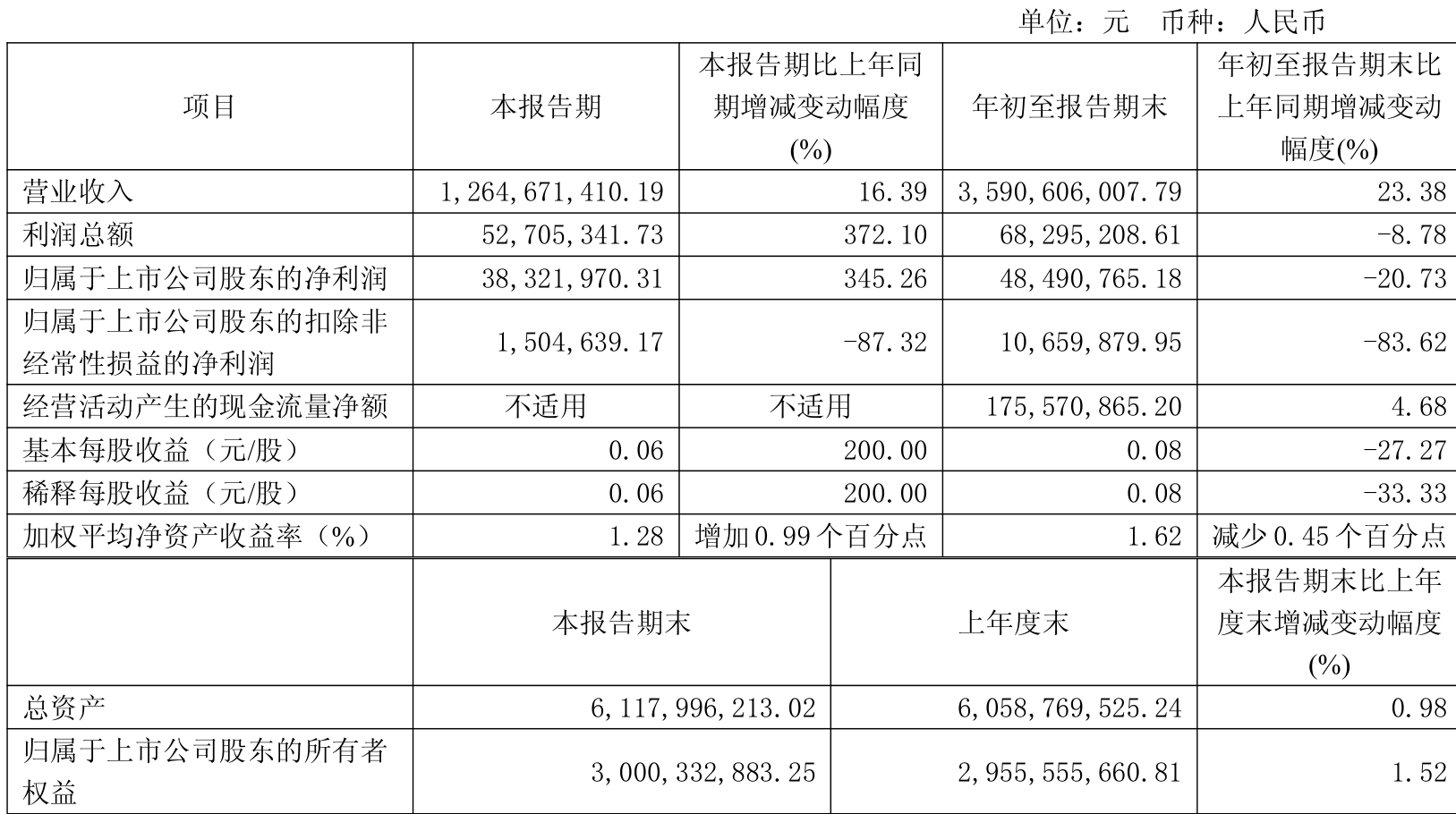 资产重大变化方面,截至2025年三季度末,公司固定资产较上年末减少11.9%,占公司总资产比重下降4.13个百分点;货币资金较上年末增加39.68%,占公司总资产比重上升4.02个百分点;其他应收款(含利息和股利)较上年末增加45.56%,占公司总资产比重上升1.17个百分点;无形资产较上年末减少12.88%,占公司总资产比重下降1.15个百分点。