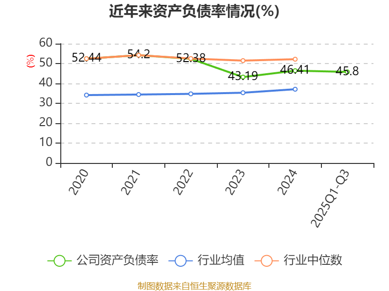 负债重大变化方面,截至2025年三季度末,公司长期应付款合计较上年末减少21.72%,占公司总资产比重下降2.05个百分点;短期借款较上年末增加12.13%,占公司总资产比重上升1.78个百分点;长期借款较上年末减少21.83%,占公司总资产比重下降0.25个百分点;租赁负债较上年末减少37.97%,占公司总资产比重下降0.25个百分点。