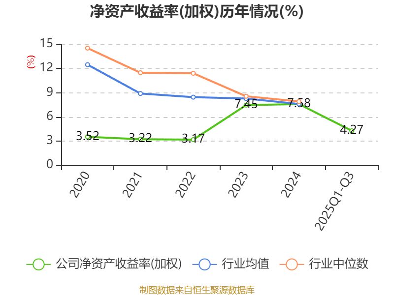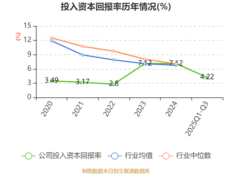盈利能力方面, 2025年前三季度公司加权平均净资产收益率为4.27%,同比下降0.92个百分点。公司2025年前三季度投入资本回报率为4.22%,较上年同期下降0.58个百分点。