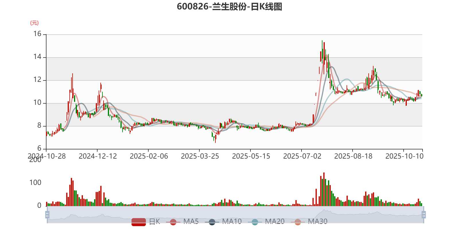 中证智能财讯兰生股份(600826)10月28日披露2025年第三季度报告。前三季度公司实现营业总收入10.25亿元,同比增长10.00%;归母净利润1.81亿元,同比下降10.51%;扣非净利润1.17亿元,同比下降15.85%;经营活动产生的现金流量净额为3.19亿元,同比增长62.01%;报告期内,兰生股份基本每股收益为0.25元,加权平均净资产收益率为4.27%。