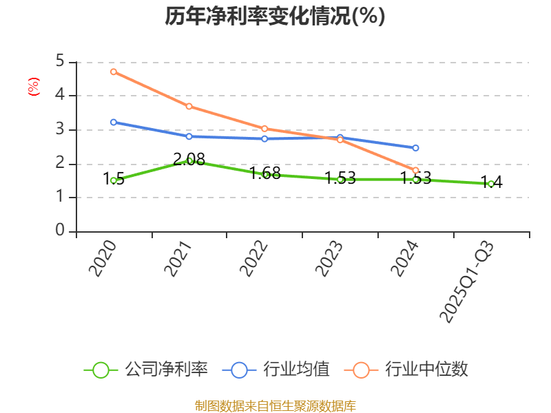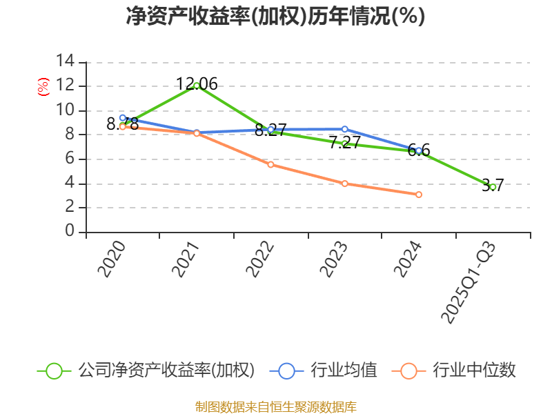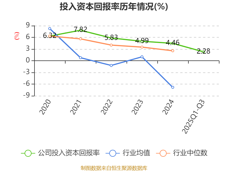 盈利能力方面, 2025年前三季度公司加权平均净资产收益率为3.7%,同比下降1.02个百分点。公司2025年前三季度投入资本回报率为2.28%,较上年同期下降0.82个百分点。