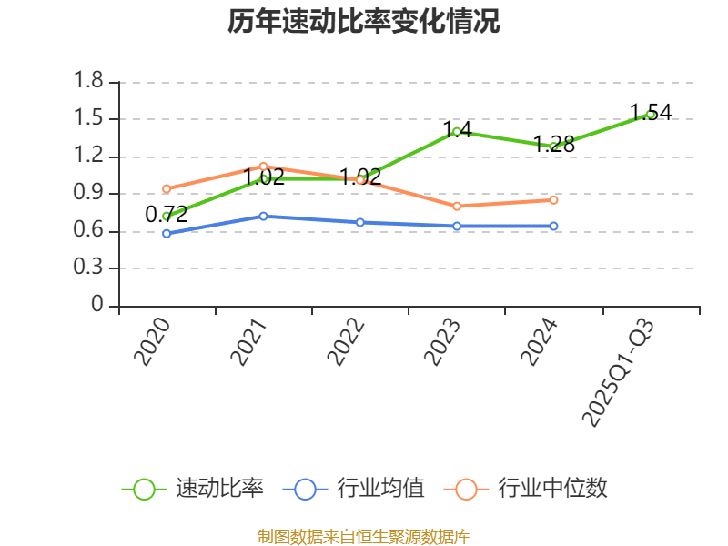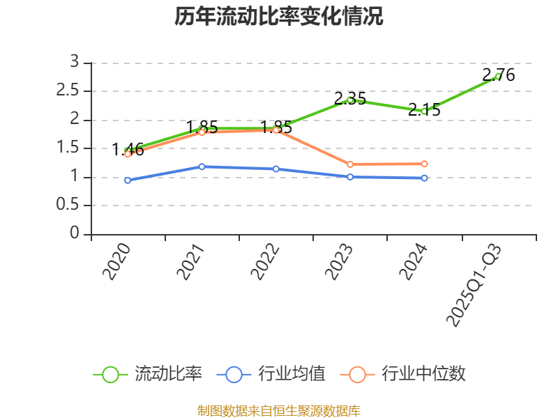 2025年前三季度,公司流动比率为2.76,速动比率为1.54。