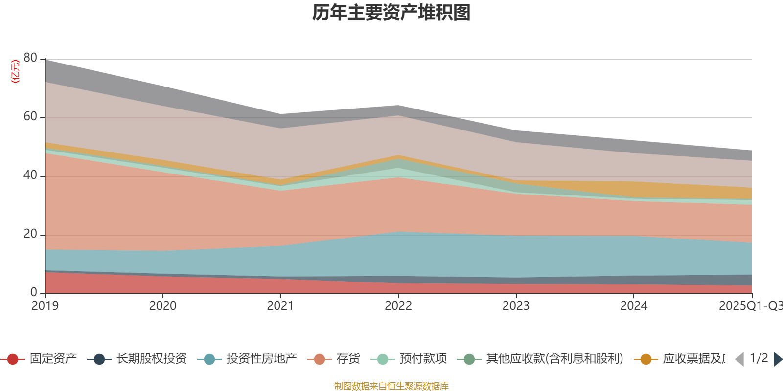 资产重大变化方面,截至2025年三季度末,公司存货较上年末增加10.13%,占公司总资产比重上升4.06个百分点;投资性房地产较上年末减少20.3%,占公司总资产比重下降3.82个百分点;长期应收款较上年末减少54.06%,占公司总资产比重下降2.5个百分点;应收票据及应收账款较上年末减少26.67%,占公司总资产比重下降2.22个百分点。