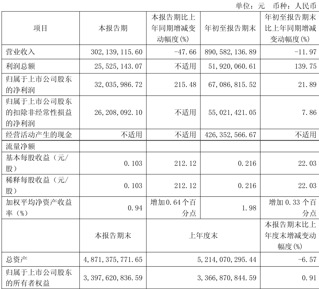 中证智能财讯宁波联合(600051)10月28日披露2025年第三季度报告。前三季度公司实现营业总收入8.91亿元,同比下降11.97%;归母净利润6708.68万元,同比增长21.89%;扣非净利润5502.14万元,同比增长7.86%;经营活动产生的现金流量净额为4.26亿元,上年同期为-176.55万元;报告期内,宁波联合基本每股收益为0.216元,加权平均净资产收益率为1.98%。