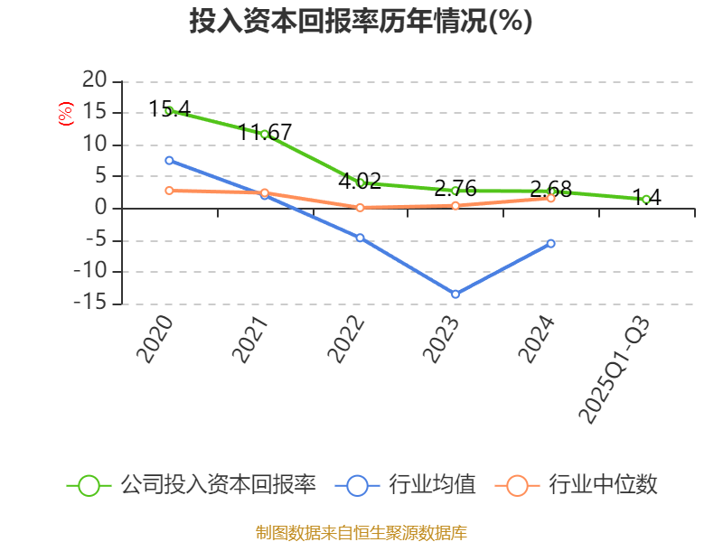 盈利能力方面, 2025年前三季度公司加权平均净资产收益率为1.98%,同比上升0.33个百分点。公司2025年前三季度投入资本回报率为1.4%,较上年同期上升0.94个百分点。