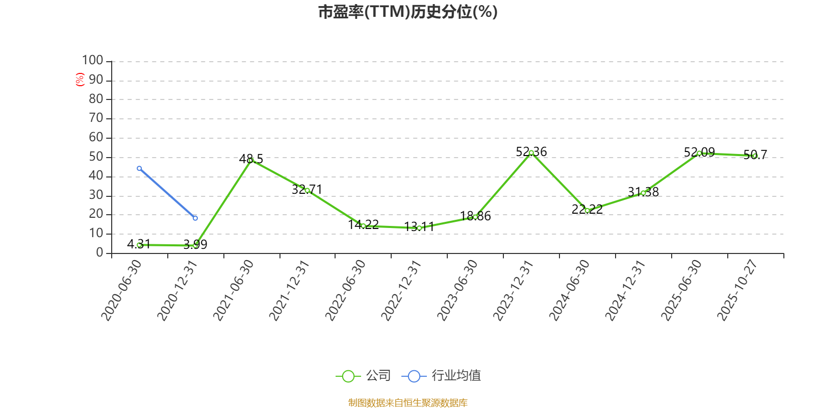 市盈率、市净率为负时,不显示当期分位数,会导致折线图中断。