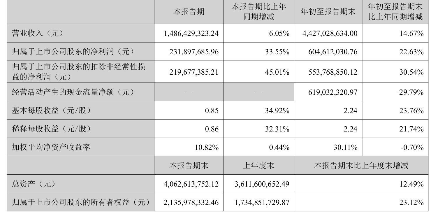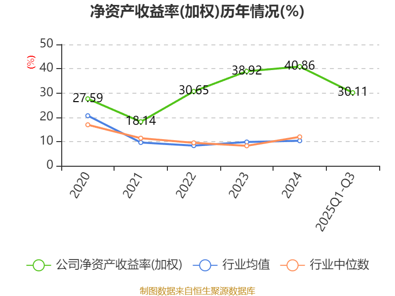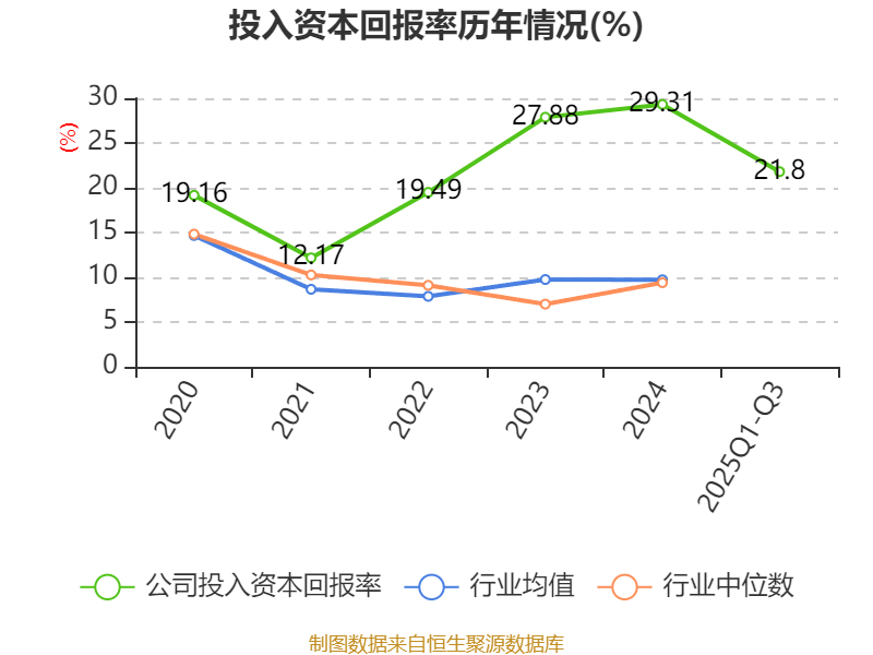 盈利能力方面, 2025年前三季度公司加权平均净资产收益率为30.11%,同比下降0.7个百分点。公司2025年前三季度投入资本回报率为21.8%,较上年同期下降2.21个百分点。