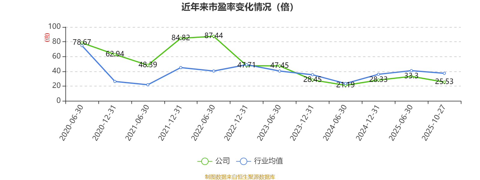 以10月27日收盘价计算,盐津铺子目前市盈率(TTM)约为25.53倍,市净率(LF)约8.98倍,市销率(TTM)约3.27倍。