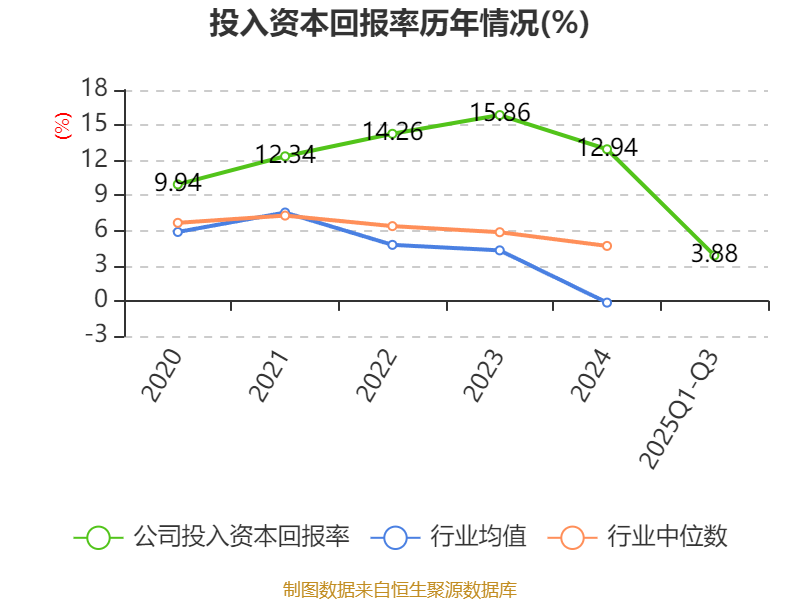 盈利能力方面, 2025年前三季度公司加权平均净资产收益率为5.37%,同比下降7.17个百分点。公司2025年前三季度投入资本回报率为3.88%,较上年同期下降4.81个百分点。