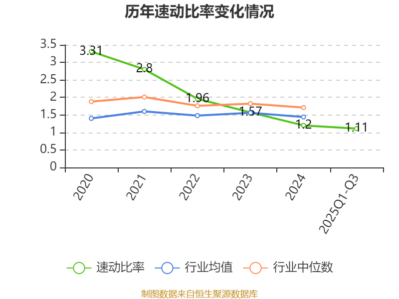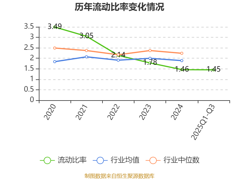 2025年前三季度,公司流动比率为1.45,速动比率为1.11。