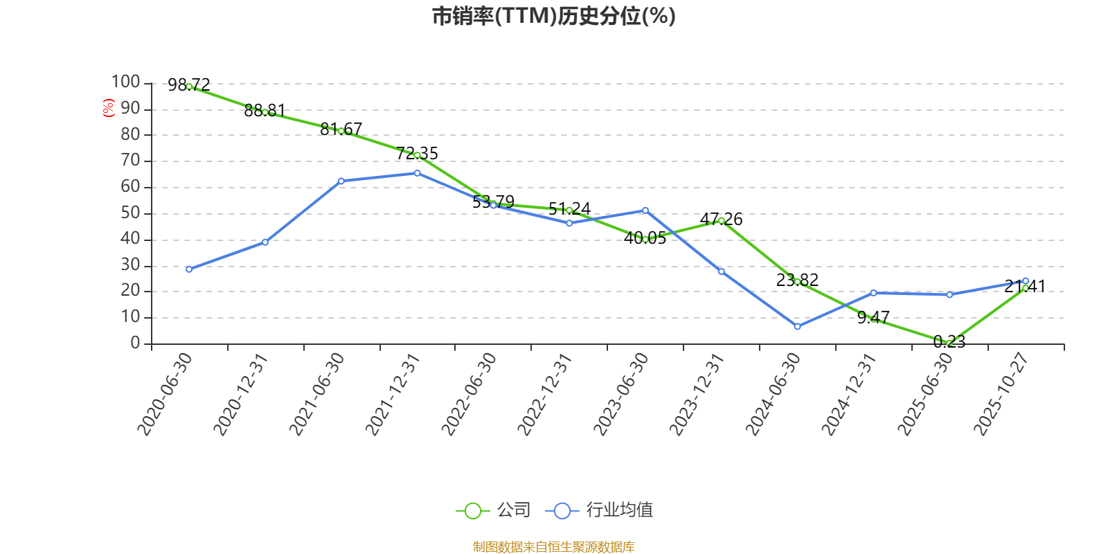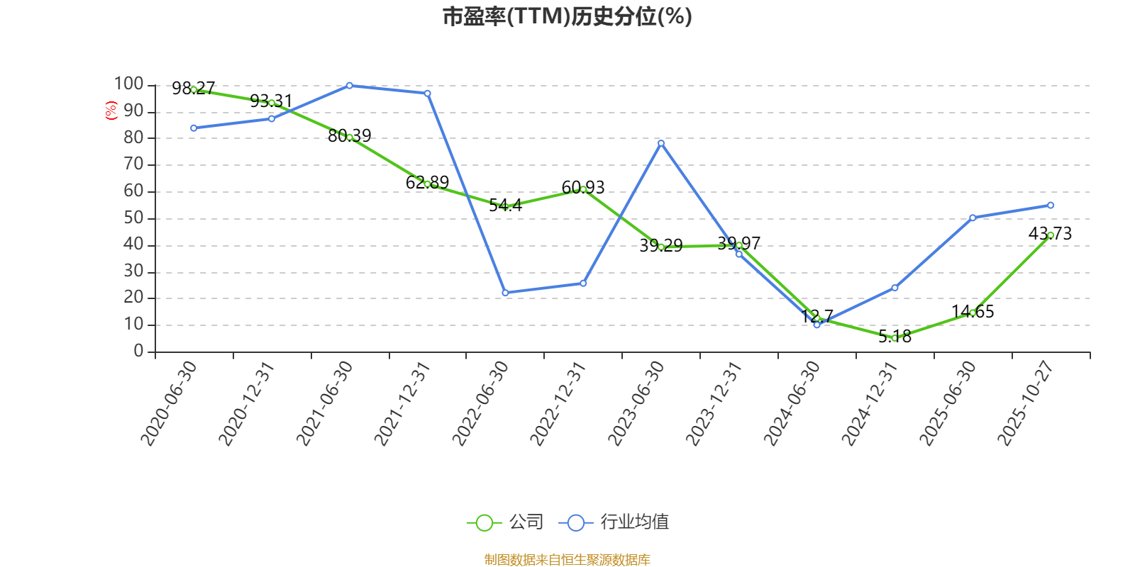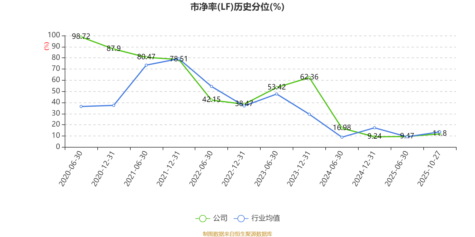 市盈率、市净率为负时,不显示当期分位数,会导致折线图中断。