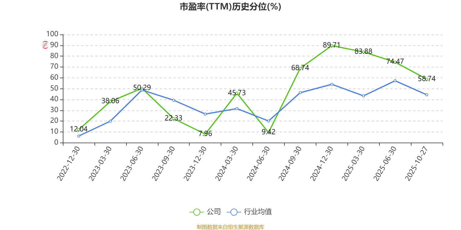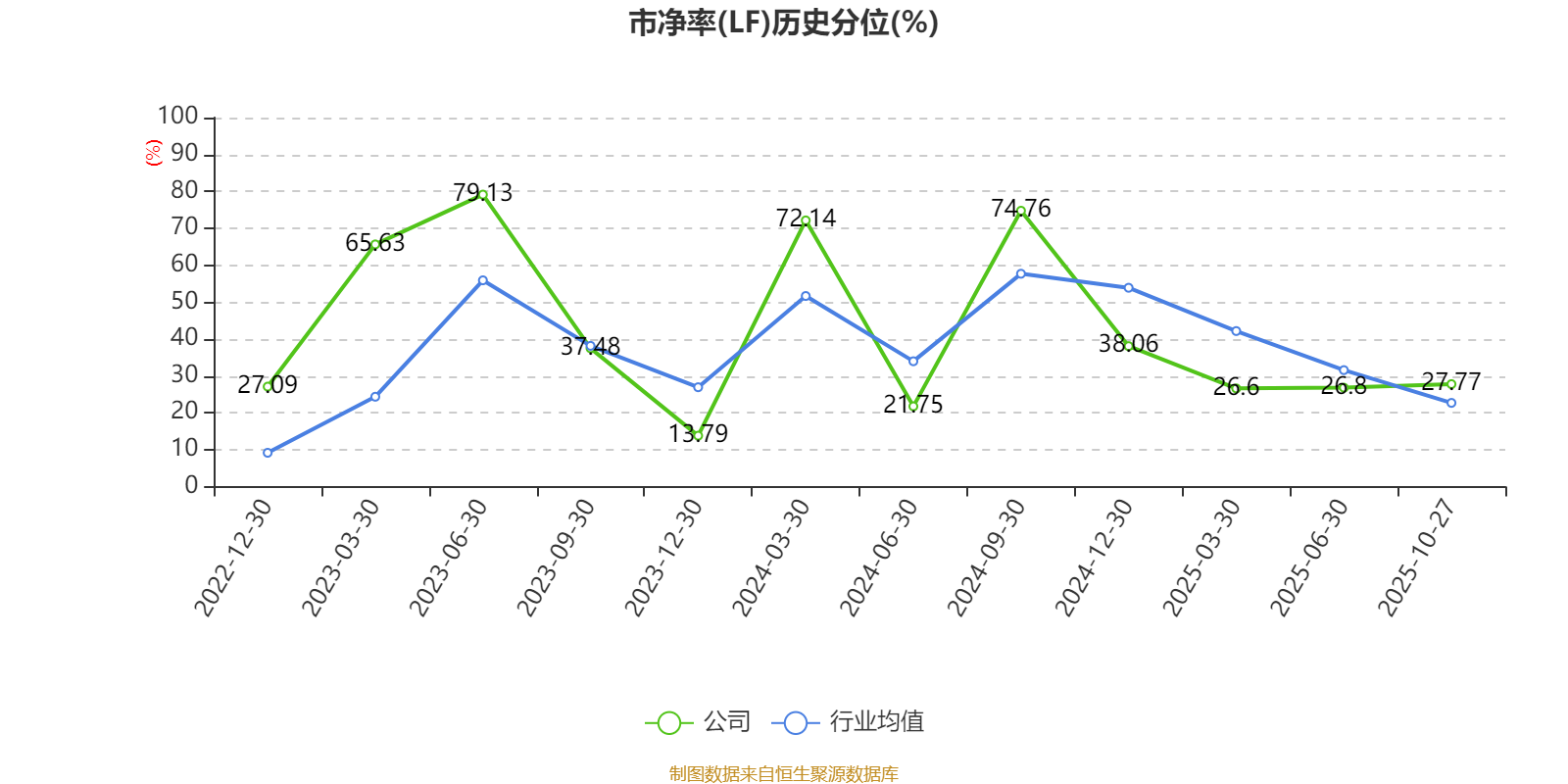 市盈率、市净率为负时,不显示当期分位数,会导致折线图中断。
