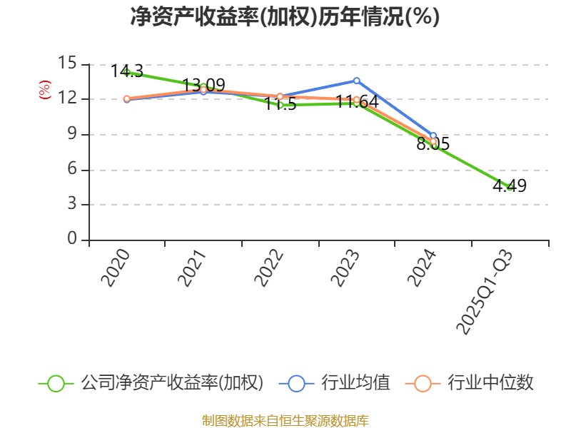 盈利能力方面, 2025年前三季度公司加权平均净资产收益率为4.49%,同比上升1.3个百分点。公司2025年前三季度投入资本回报率为3.76%,较上年同期上升1.54个百分点。