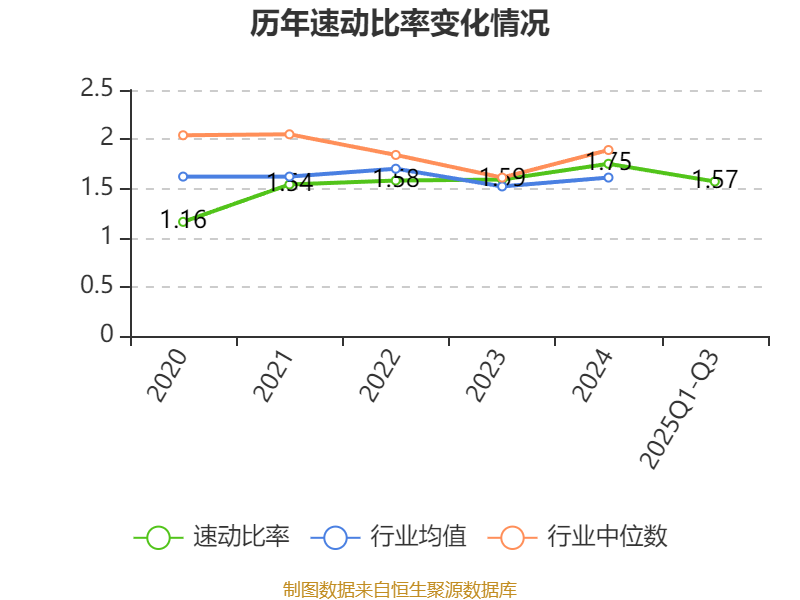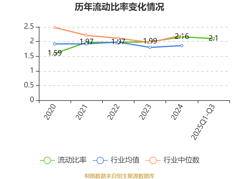 2025年前三季度,公司流动比率为2.1,速动比率为1.57。