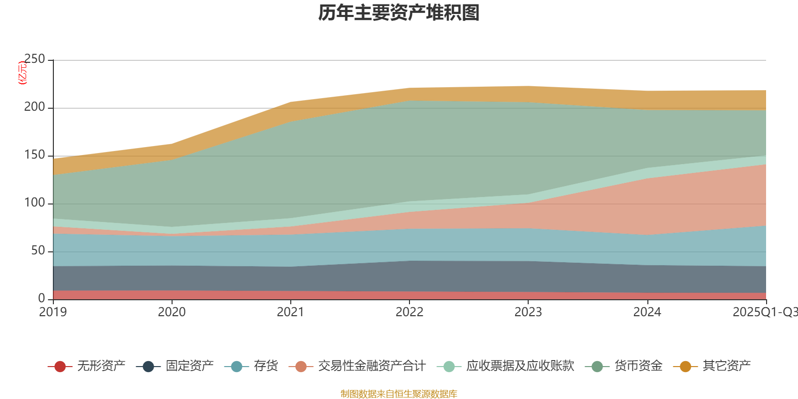 资产重大变化方面,截至2025年三季度末,公司货币资金较上年末减少22.2%,占公司总资产比重下降6.21个百分点;存货较上年末增加34.31%,占公司总资产比重上升4.92个百分点;交易性金融资产合计较上年末增加8.47%,占公司总资产比重上升2.22个百分点;应收票据及应收账款较上年末减少14.98%,占公司总资产比重下降0.77个百分点。